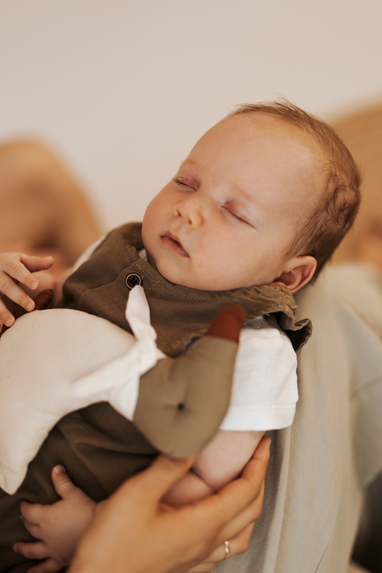 Kisbabáddal való első találkozás pillanatai, diszkréten a háttérből fotózva.